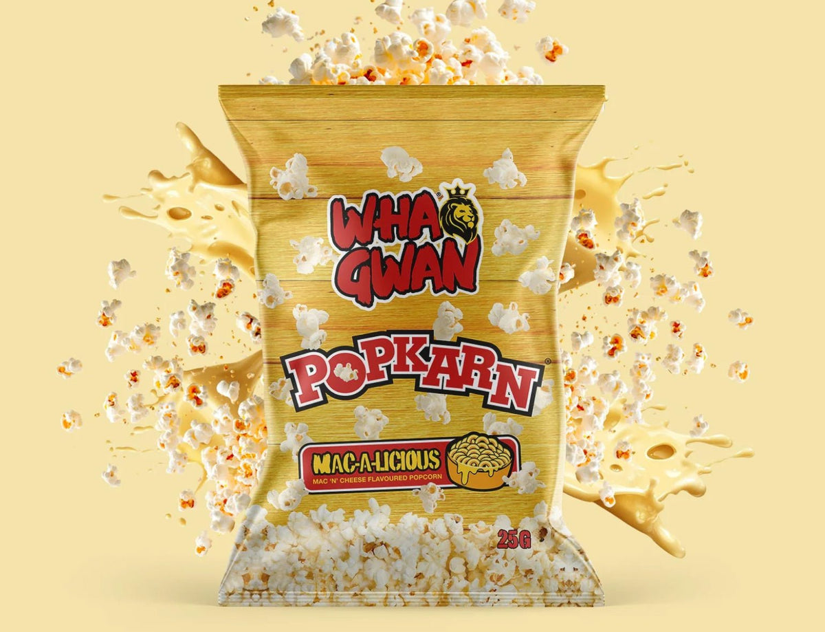 Say cheese—then say it again! Wha Gwan Popkarn “Mac-a-licious” is a creamy, crave-worthy twist on popcorn. Packed with the oozy, cheesy goodness of mac ‘n’ cheese in every bite, this 18-pack multipack is comfort food with crunch. Perfect for munching anytime you need a cheesy fix.